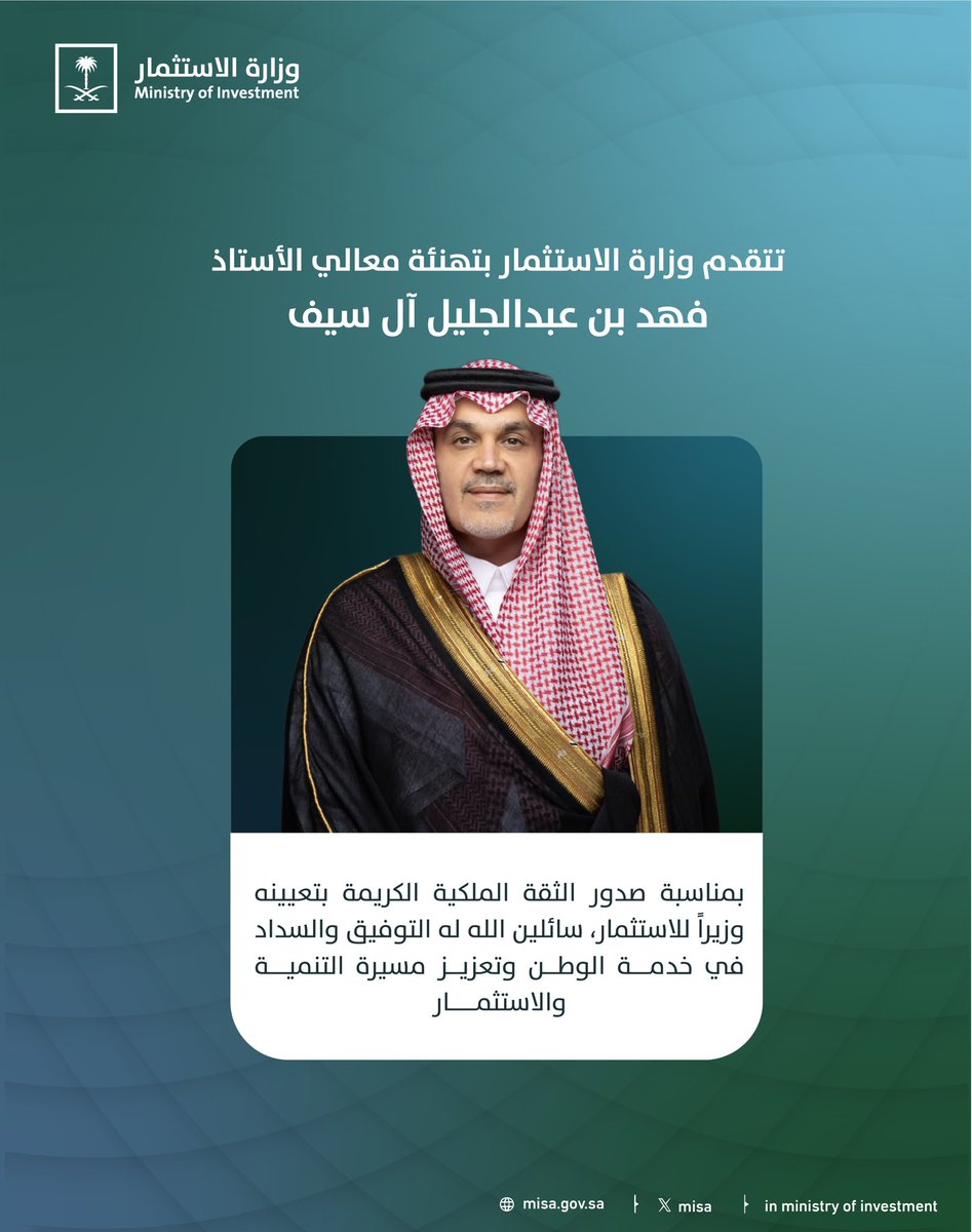 As Minister of Investment, HE Khalid Al-Falih leads a multi-disciplinary and multi-specialty team that contributes to exceptional achievements in the field of developing the investment environment in the Kingdom, attracting national and foreign investments to various vital and promising economic sectors, and supporting the Saudi private sector’s investments outside the Kingdom, in addition to driving the growth of the private sector in the Kingdom, which is a major goal of the Kingdom’s “Vision 2030”, and an important factor in the efforts to diversify the Kingdom’s national economy